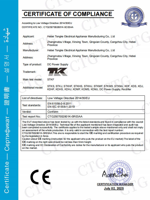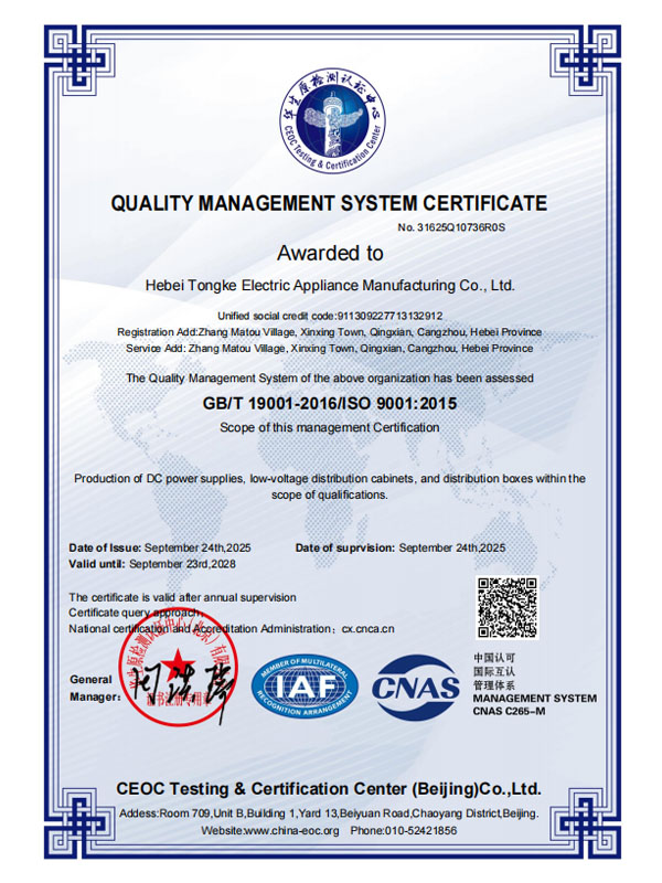 Мы не только производитель импульсных источников питания, но и ваш надежный партнер в решении энергетических задач. Мы гарантируем, что вся продукция поставляется с двухлетней бесплатной гарантией и пожизненной технической поддержкой. ООО Хэбэй Тонгке по производству электрооборудования — вместе создадим будущее зеленой энергетики.